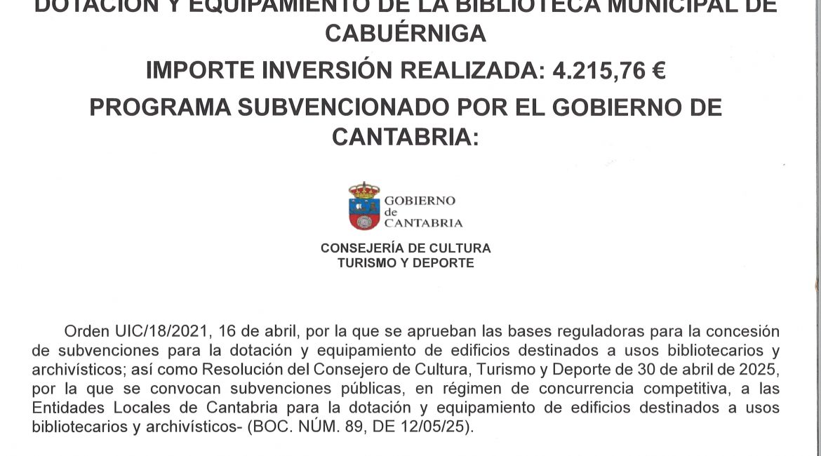 DOTACIÓN Y EQUIPAMIENTO DE LA BIBLIOTECA MUNICIPAL DE CABUÉRNIGA