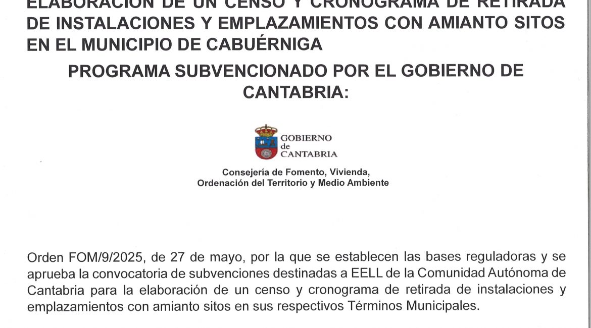 Orden FOM/9/2025, de 27 de mayo, ELABORACIÓN DE UN CENSO Y CRONOGRAMA DE RETIRADA DE INSTALACIONES Y EMPLAZAMIENTOS CON AMIANTO